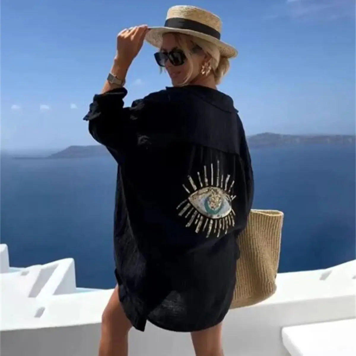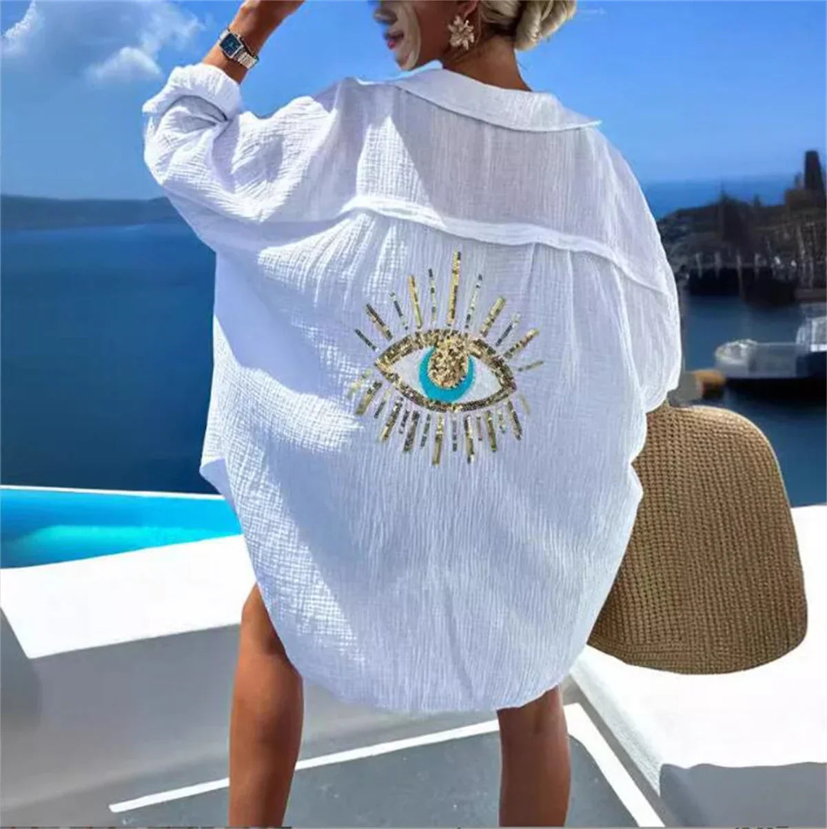 Helena - Camisa overSize con estampado de nazar