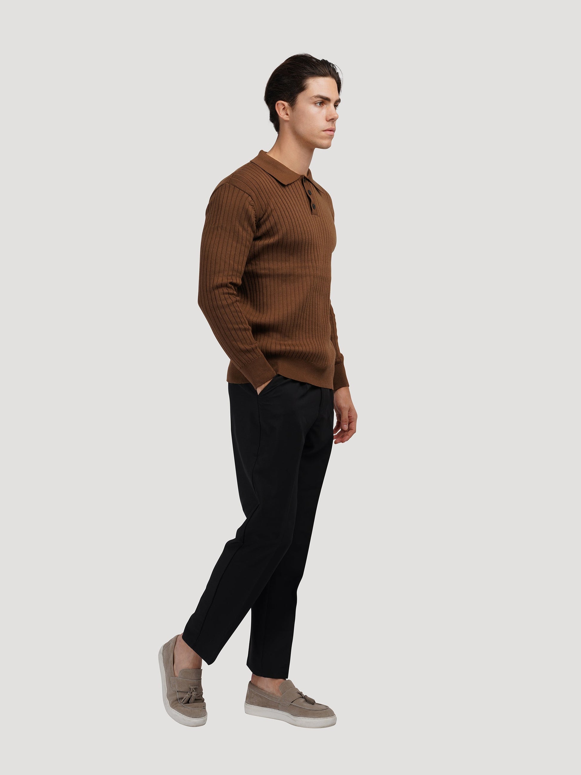 For a decidedly sophisticated approach to refined attire, this men’s polo is a must. Featuring a buttoned collar, it is detailed with vertical ribbing to elevate your casual look with sumptuous texture. The classic fit with long sleeves is all about complementing your discerning sense of style.